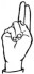 На ћирилици написано БОРИСАВА ДУБИЧАНИН састоји се из 17 слова [?]. Исписано ћириличном једноручном азбуком за глувонеме: